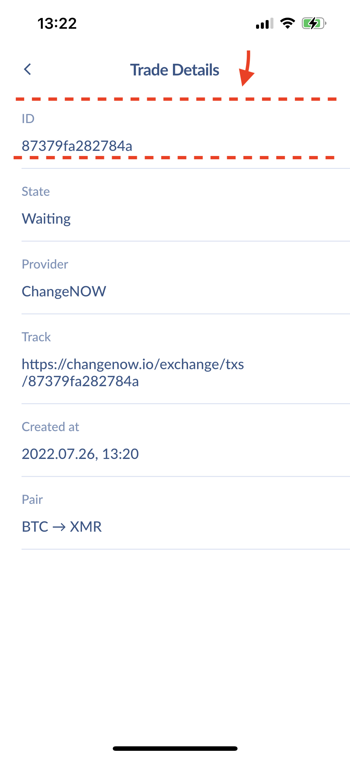 In Cake Wallet, you can find a Trade ID on the Trade Details screen.