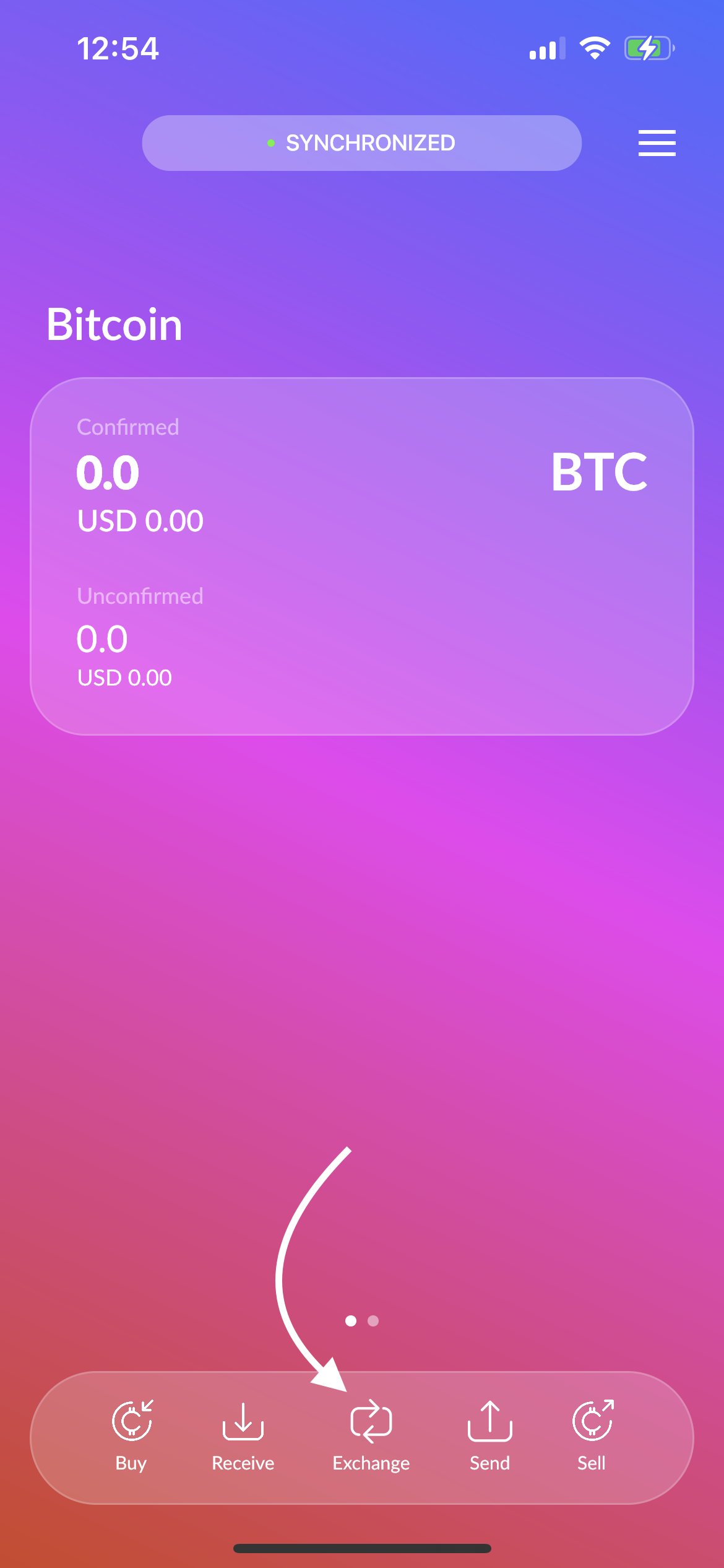 Go to the balance screen and tap on the "Swap" button. Choose your desired currencies under "Convert from" and "Convert to", by tapping on the abbreviation with a dropdown arrow to the right.