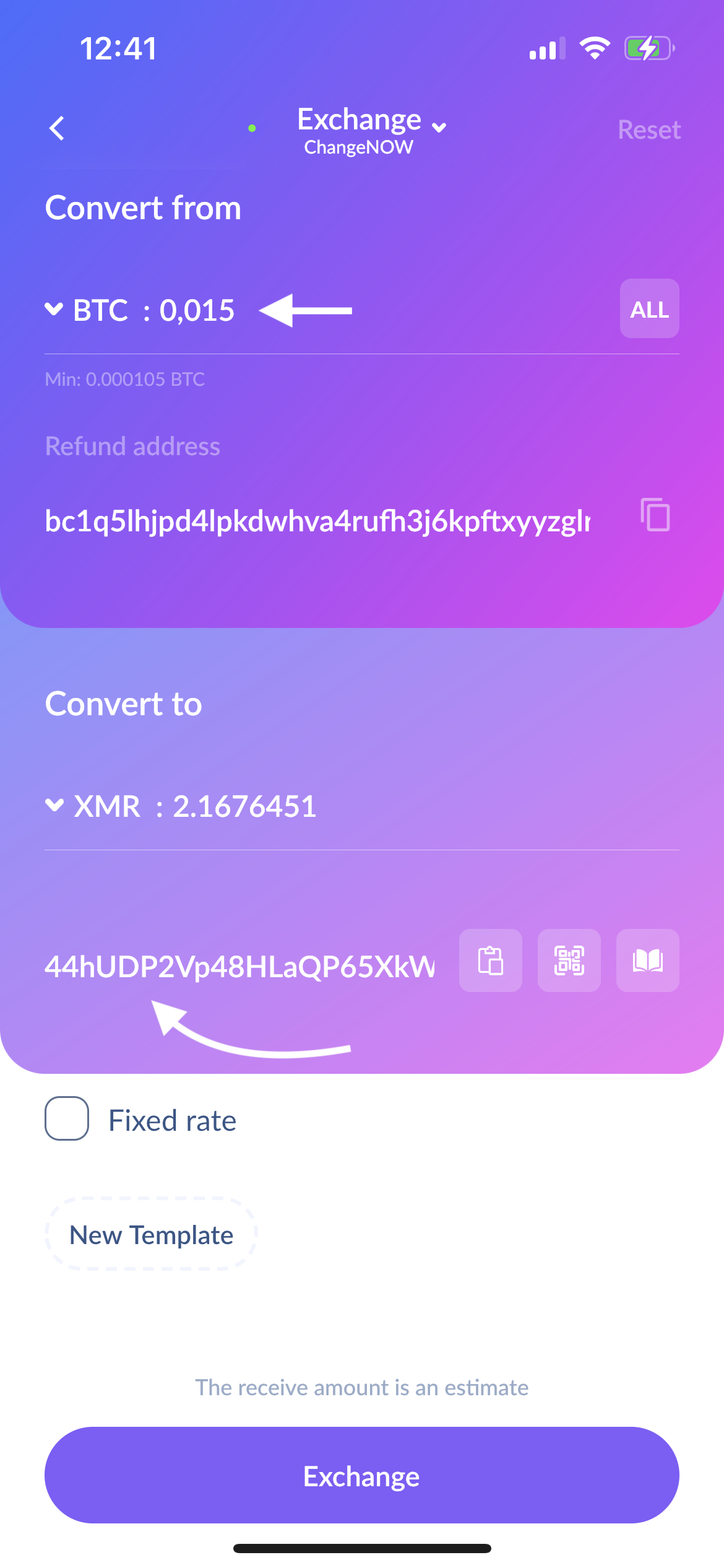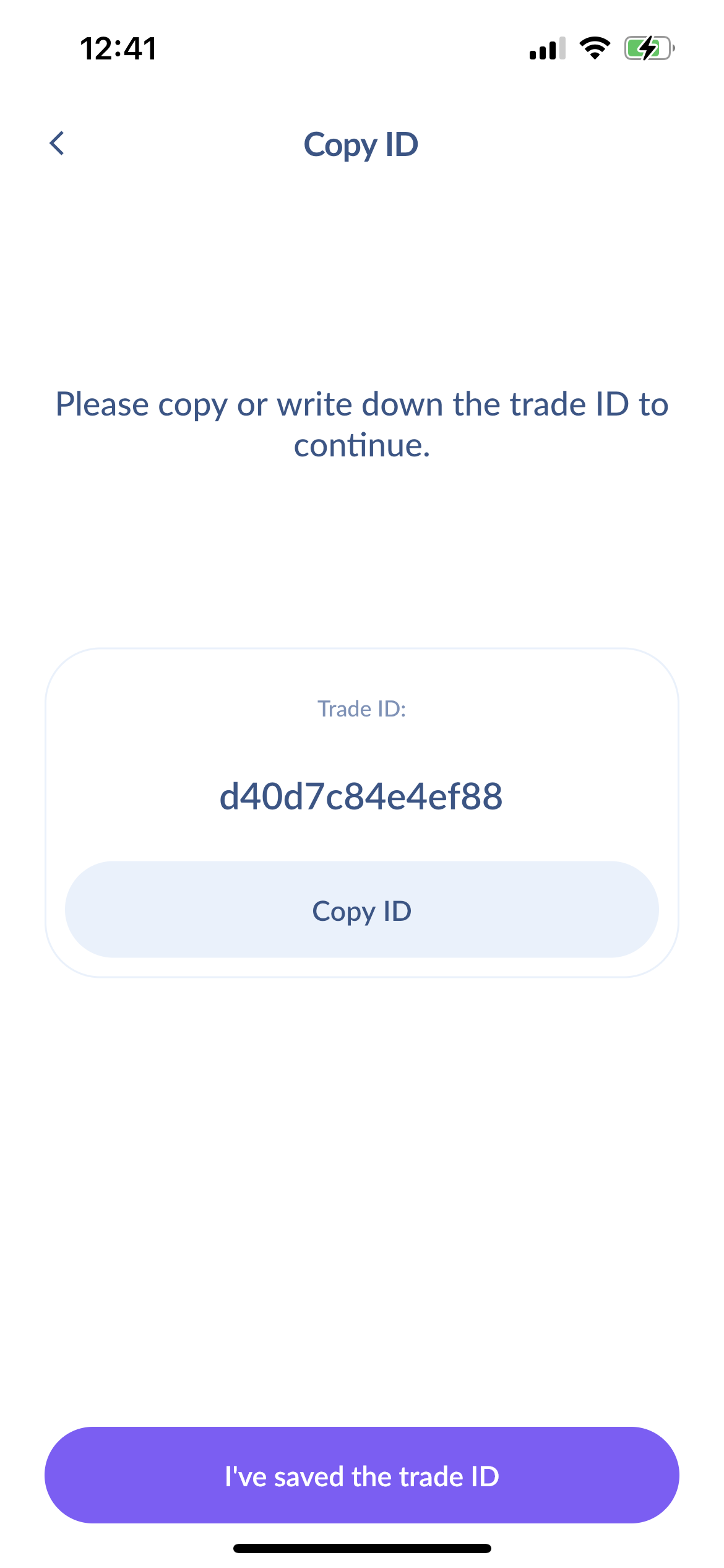 Input the receiving address (using the paste button, scanning QR code, or using Address book). We use your current BTC or XMR wallet address as the refund address. Then enter an amount. You can send all available funds from your wallet by pressing the "All" button. Check that all of the filled-in information is correct, and press "Swap". On the next screen, you will see the Trade ID. Please copy or save the Trade ID. Now tap on "Send from Cake Wallet".