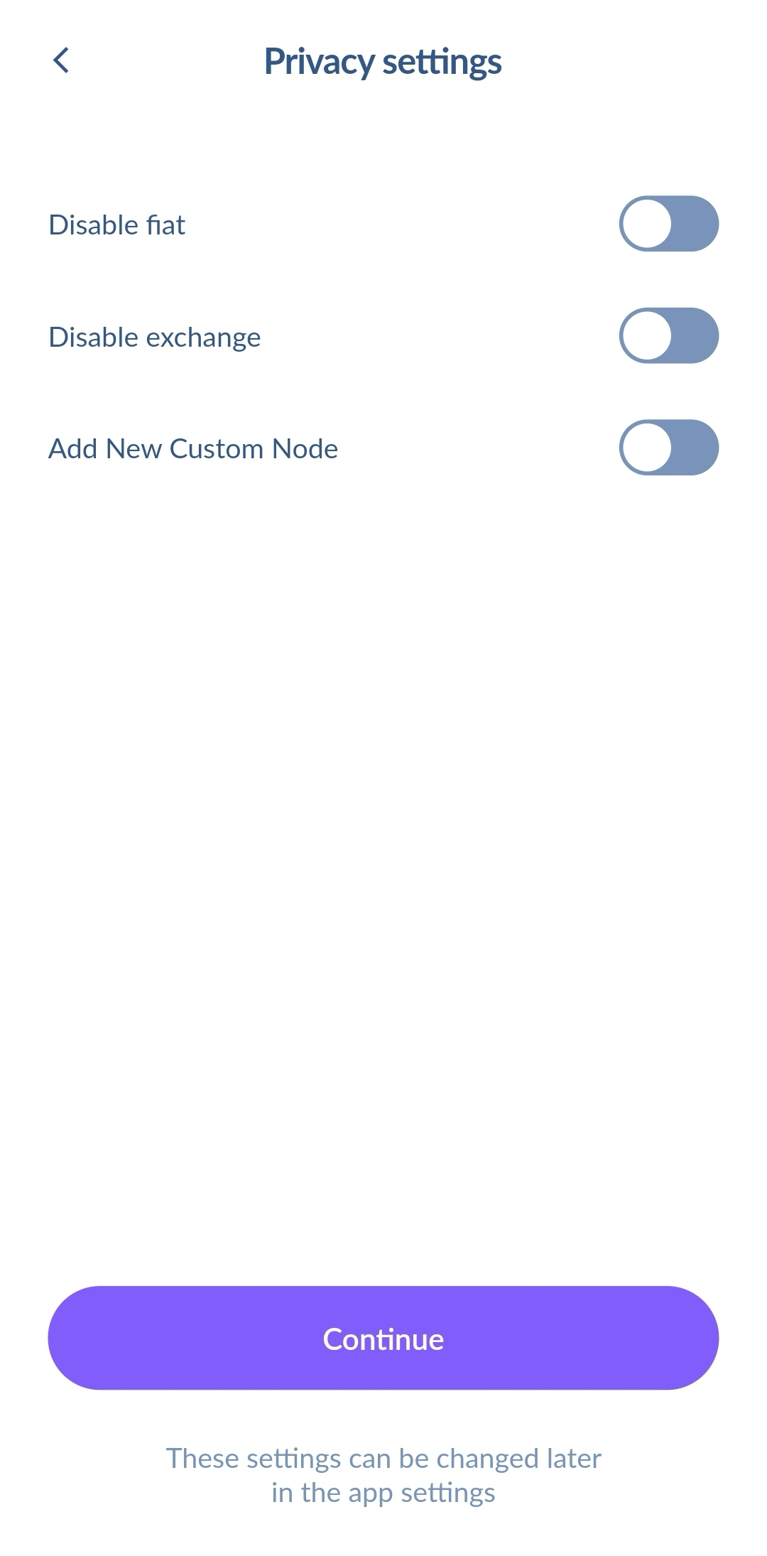 Cake Wallet allows you to optionally disable features.