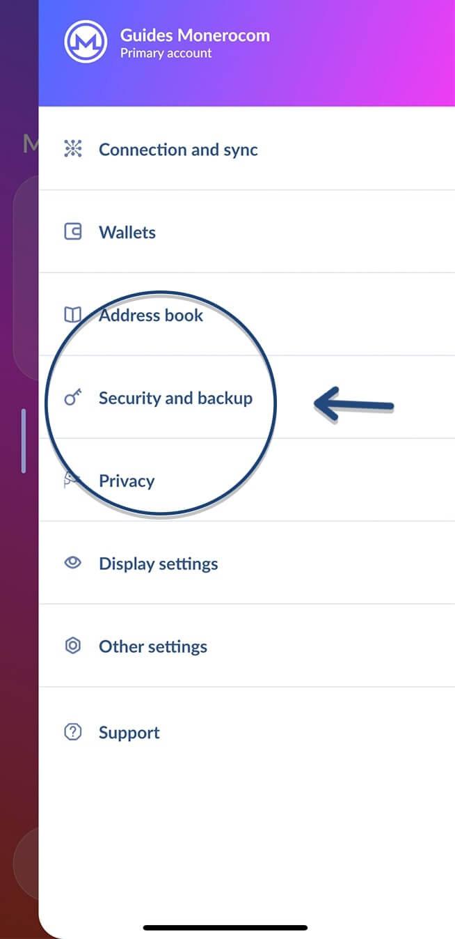 - From the menu options, select "Security and backup".