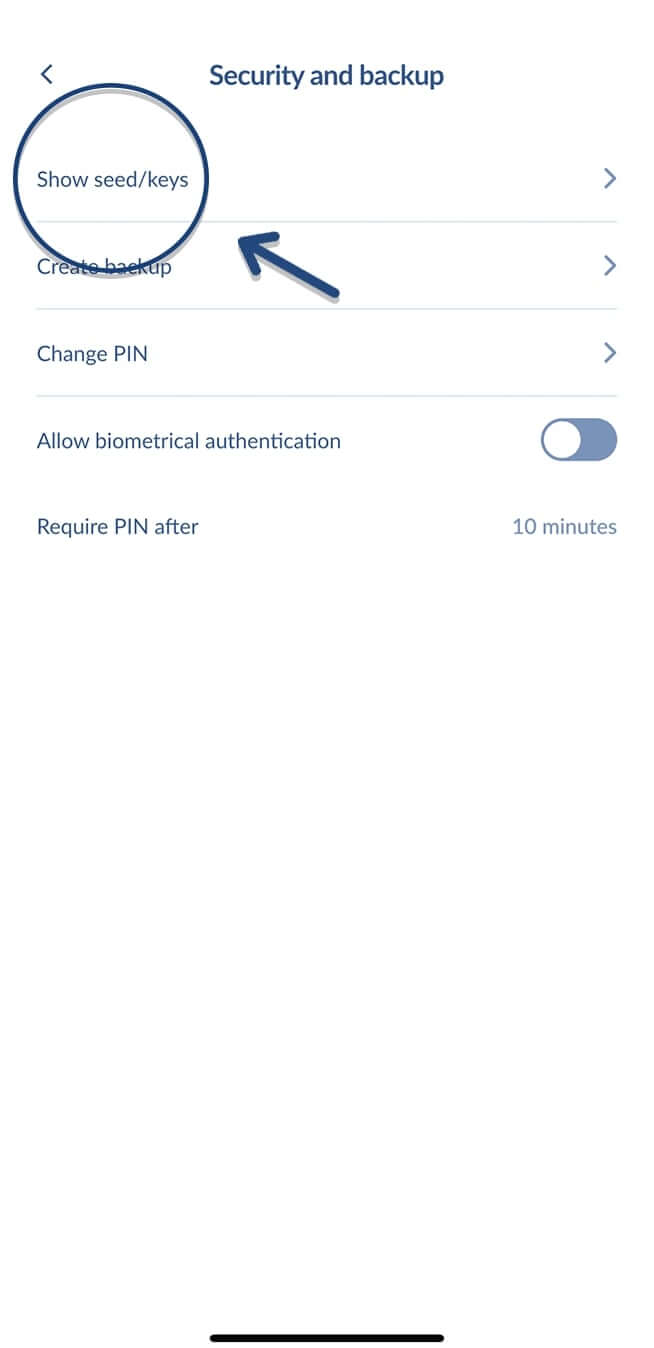 - Now choose "show seed/keys."