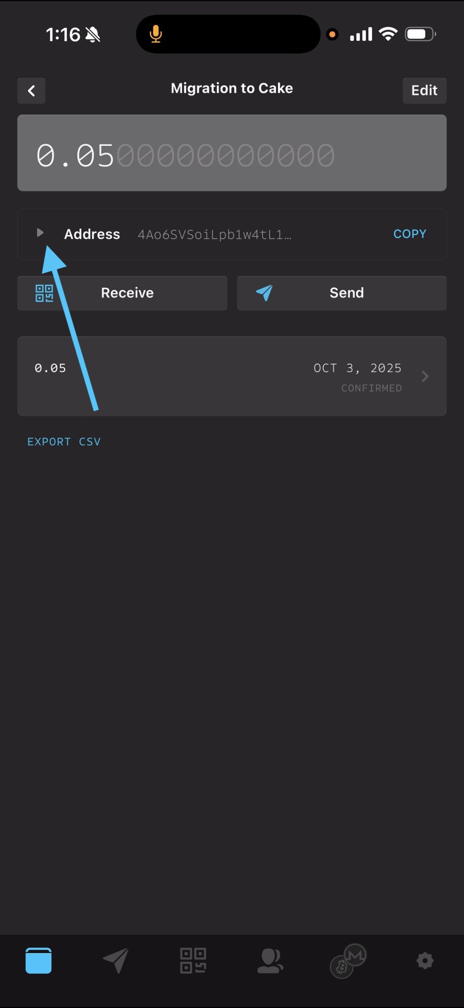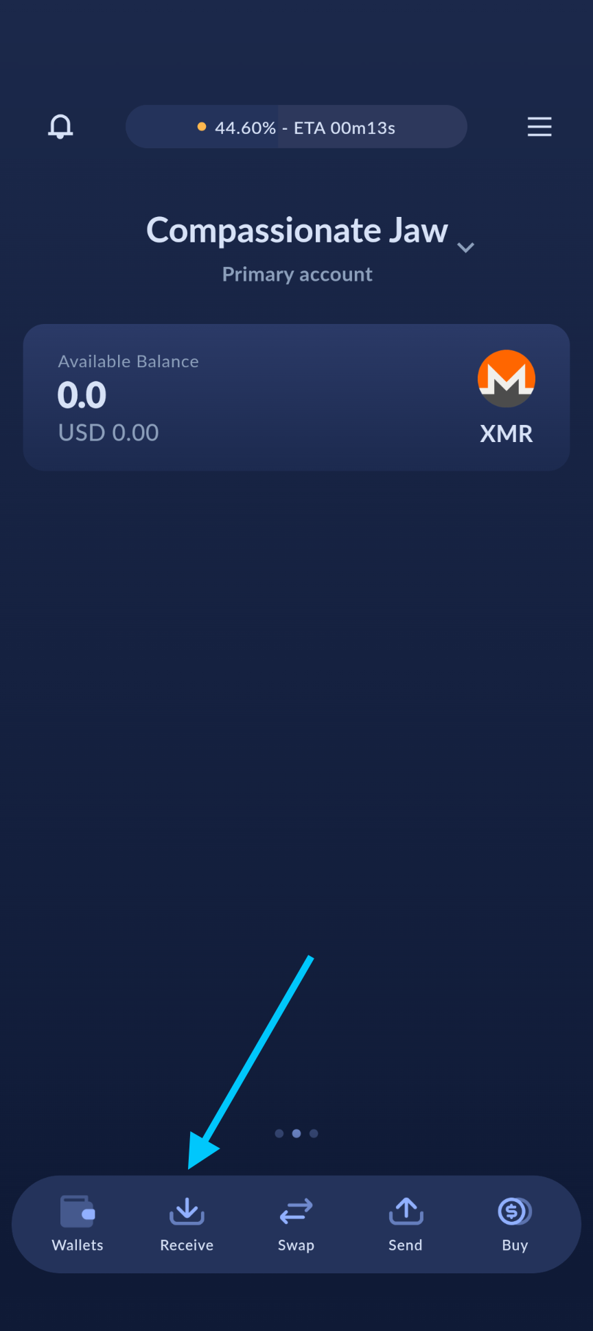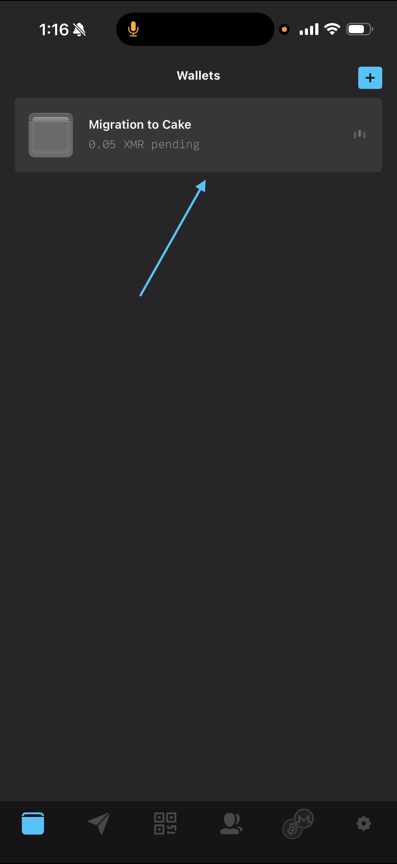 - When Cake Wallet finishes the synchronization process and the top bar says